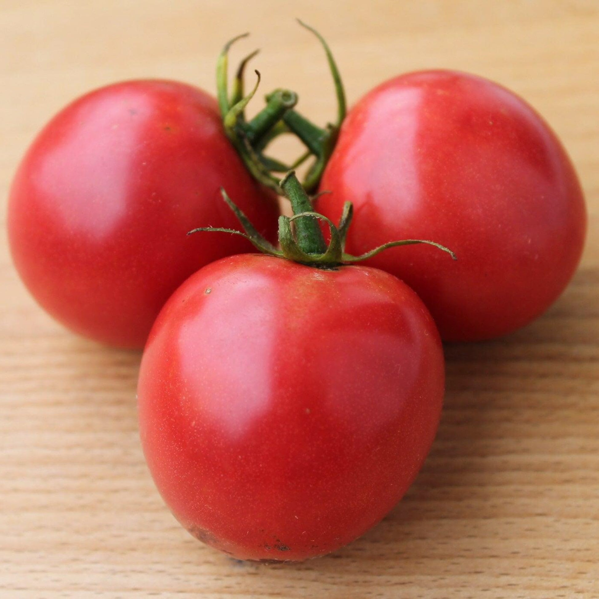 Solanum lycopersicum. Heirloom. Arkansas Traveler Tomato with pink-red fruits and excellent flavor.