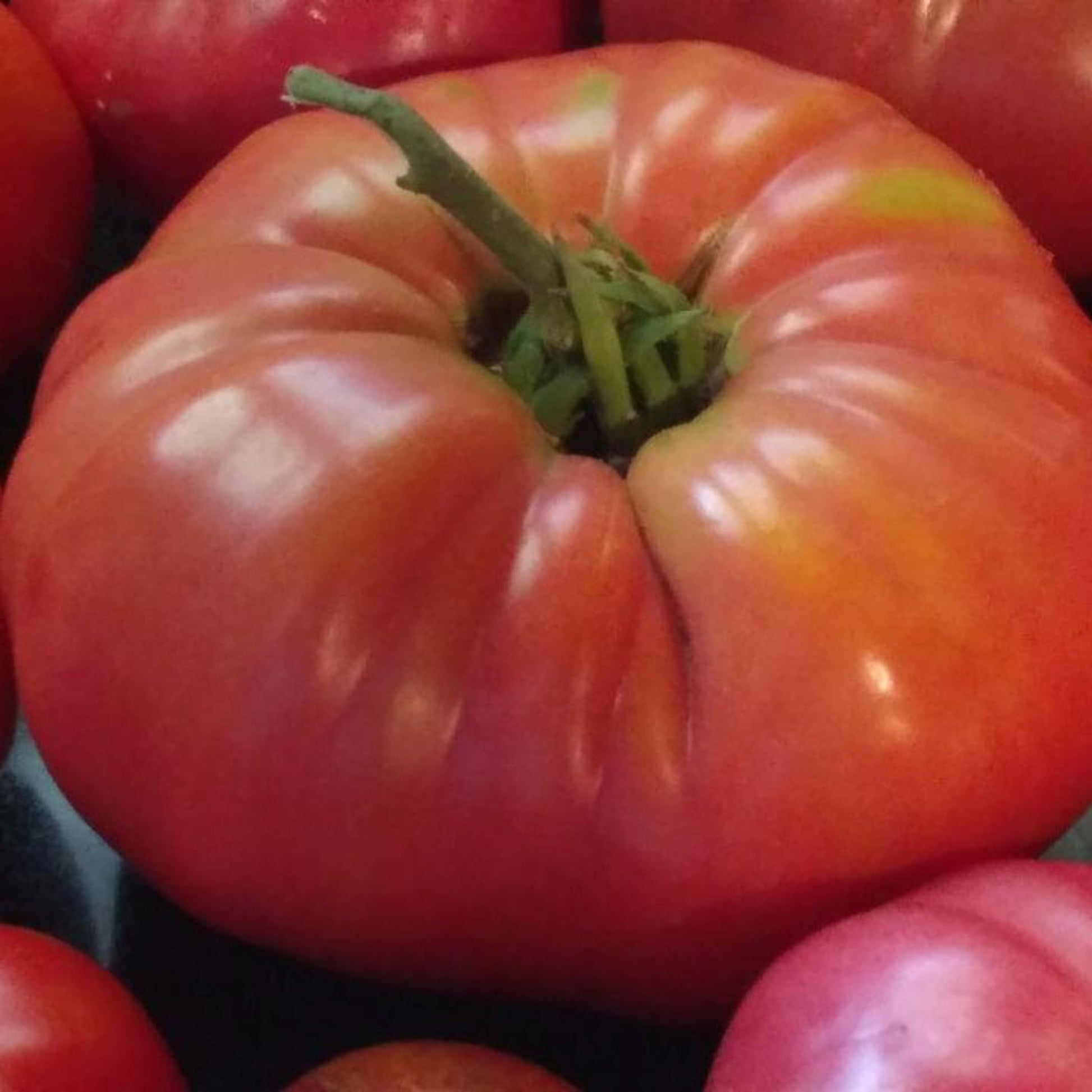 Solanum lycopersicum. Heirloom. Indiana Potato Leaf Tomato with rich flavor and tender fruits.